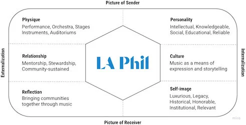The first step was to conduct an analysis of the organization’s current digital presence, to understand its values, voice and personality across platforms. A brand identity prism was compiled, highlighting the LA Phil’s core values and principles.